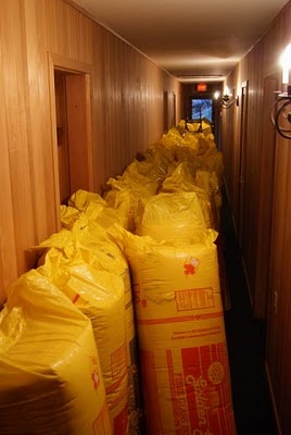Our task was to haul down bags of insulation which are needed at one of the other lodges. Fifty-eight in total, now have to be brought down to the crew's shack where they will await a plane. Going to be interesting to see just how many we can stuff into the “Beaver”. The “Christmas” plane is coming in next week bringing with it not only produce plus treats and presents for the holiday season but also Roger, Robert and our boss, Ken.