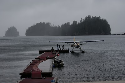 By 4 o'clock we have concluded that we will not be having guests today so we change out of our “company clothes” and decide to watch a movie. Isn't it always the way, out of nowhere the plane is touching down in the bay. We jump into rubber boots, throw on a raincoat , grab my camera and race out the door.