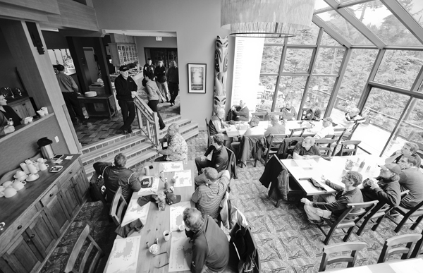 After the usual malay of helicopters and planes everyone was on Langara and Terry was giving the welcoming speech to the participants, owners and sponsors in the Clubhouse dining room...