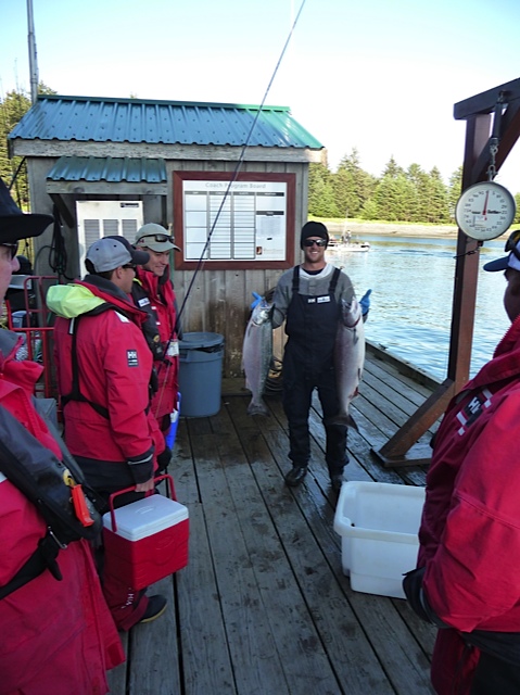 John Fisher had a few of us in stiches with his halibut fishing stories and pictured here doing his best imitation of a Yellow Eye rockfish coming up from the depths, or Jaba-the-Hut…You decide.
