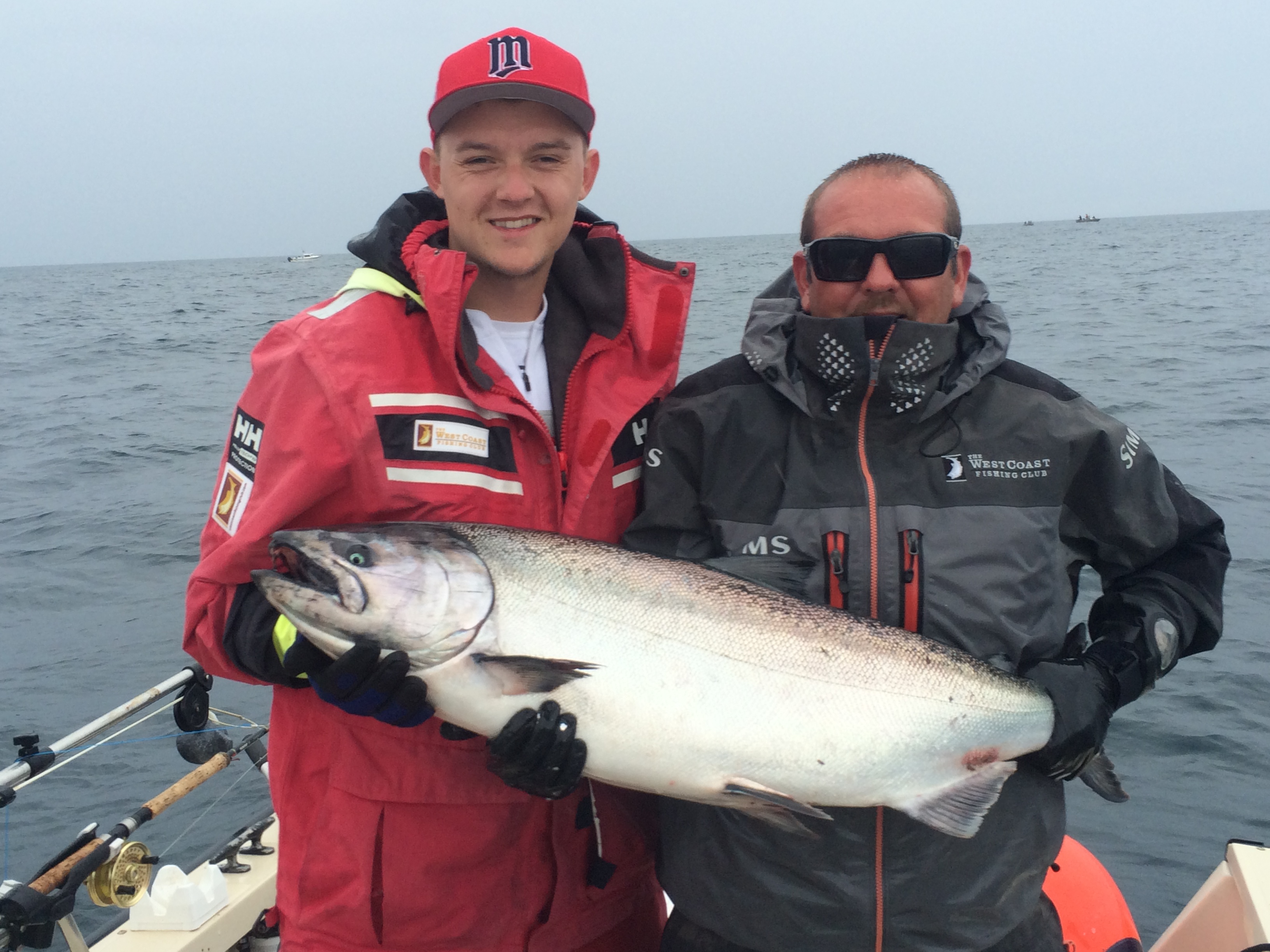 Allan Fitzpatrick holding up twin 29lb Tryees. Hell of a tub that day. We saw 4 Tyees and two damn nears in one afternoon.