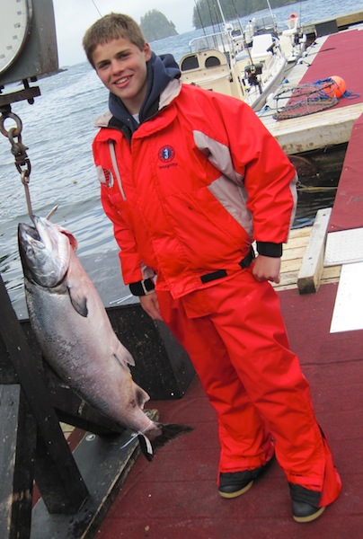 Brandan slams a 34 pounder! He was supposed to call home every night so appologies to his mom as we don't have a phone. Grandpa "Papa bear" is taking care of him and even got his own tyee today...