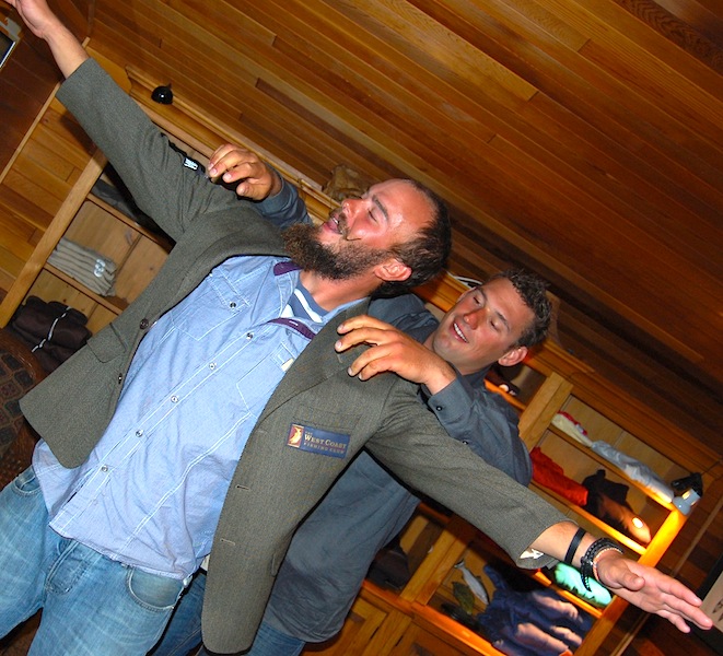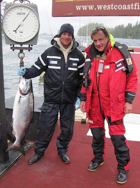 Here's the double Tyee team of Guide Dan, Brandon and Papa Bear...the only guest we've had at the OP that has been to EVERY WCFC property and a special hello to our friends in Panama; Papa arrived there the day I left back in May...and believes he has the record for the largest WCFC marlin...Tobey is this true?