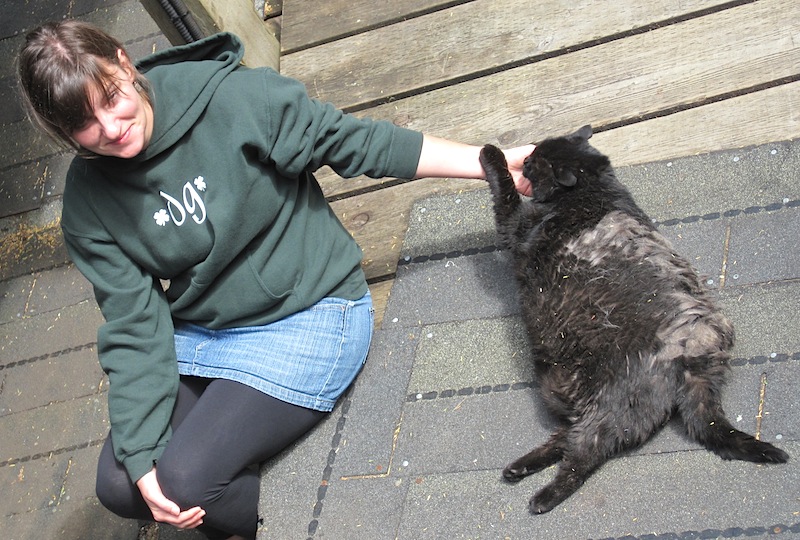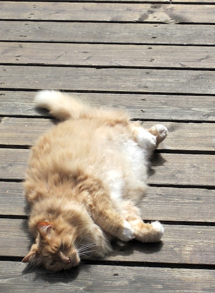 Ingram taking in some rays and hoping for a little affection on the back deck.