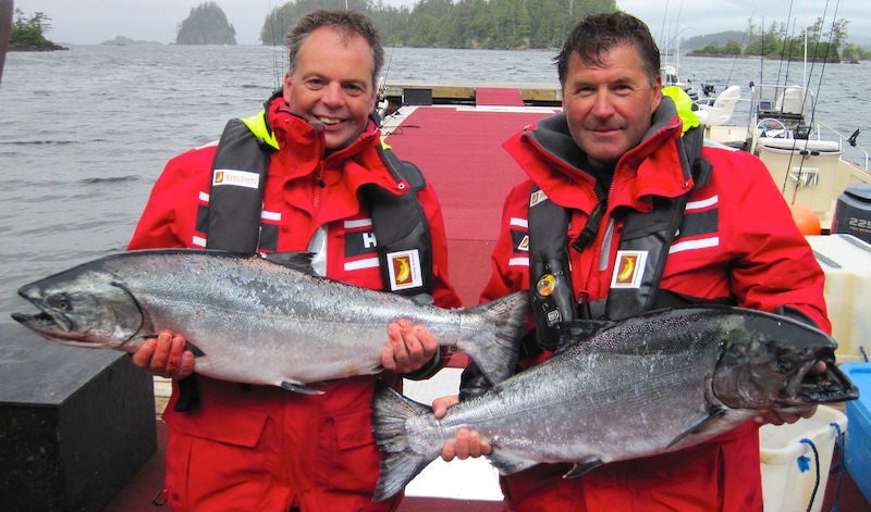 Fred and Steve come back a little windswept but with plenty of fish, Fred's 21 lb and Steve's 25.