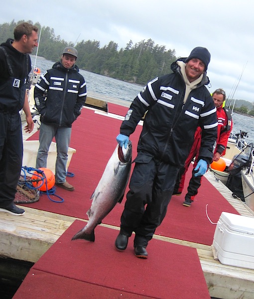 Adam strolls towards the scale hoping that this is "the one"...with the heckles of Mike and Dewy in his ear... Adam has yet to break the Tyee mark this summer...and...