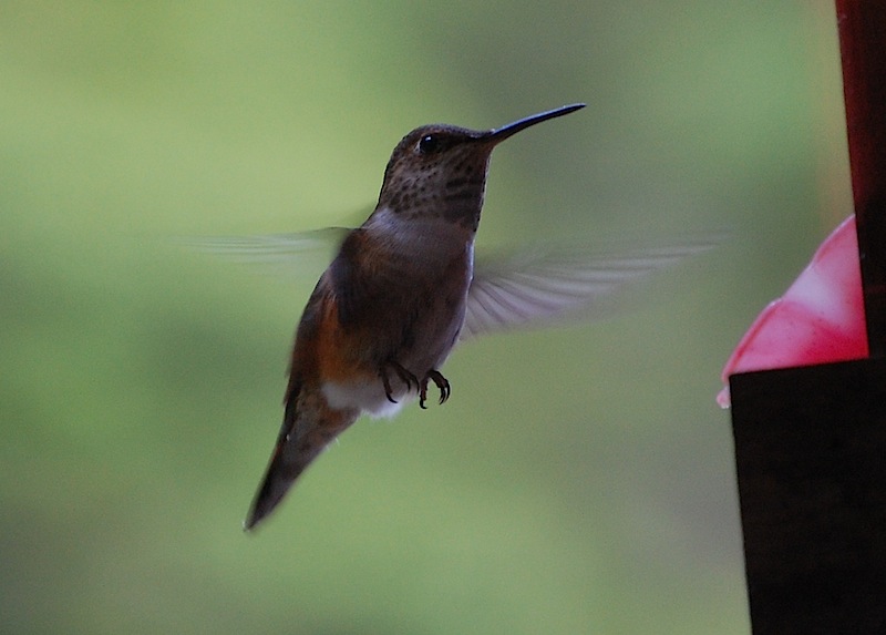 ...it hasn't effected my little friends...and I got some much better identification shots today. Lets start with what is clearly a female Rufous Hummingbird...