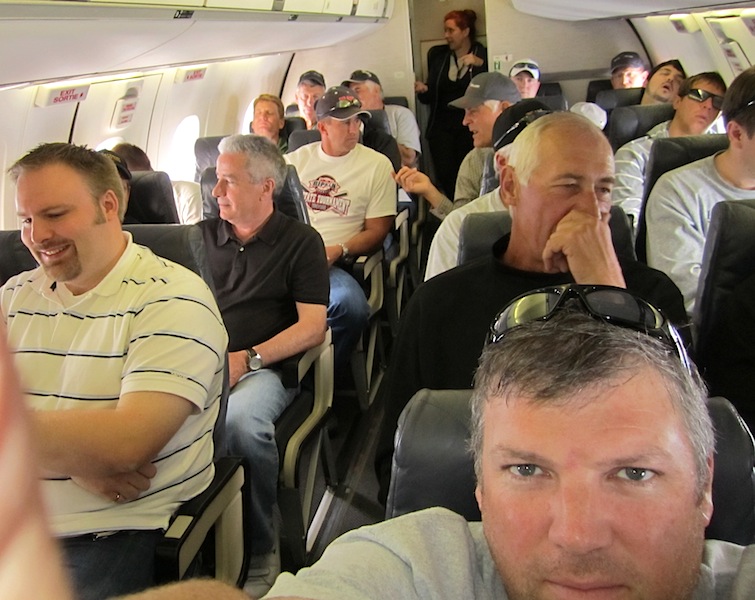 If you look closely through the crowd you can see a sleepy Clubhouse guide Jordie grabbing a few Z's on his way back from a wedding on Vancouver Island.