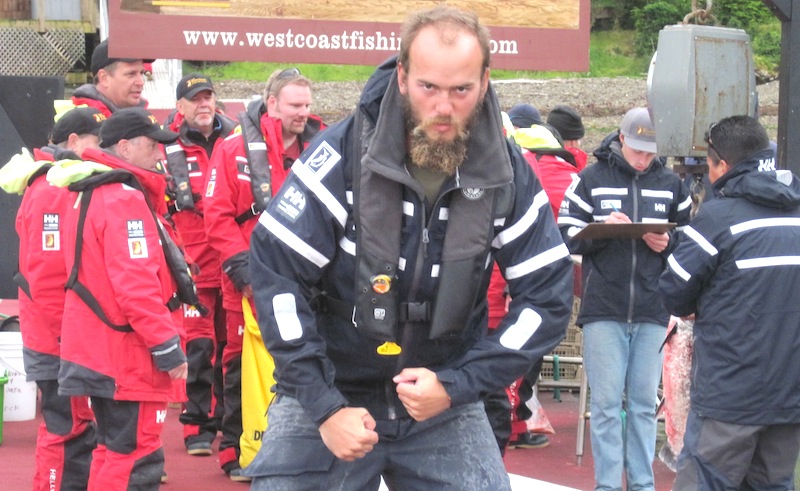 Charlie demonstrates how its done. The hali fishing has slowed but there were three 200+ pound releases this afternoon...