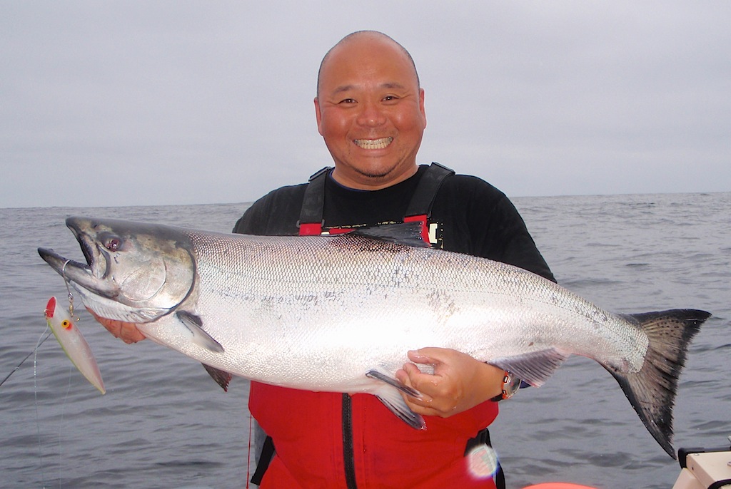 We saw everything today: Tyees released and retained, this one for Ray on the fly rod...
