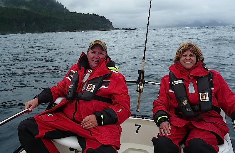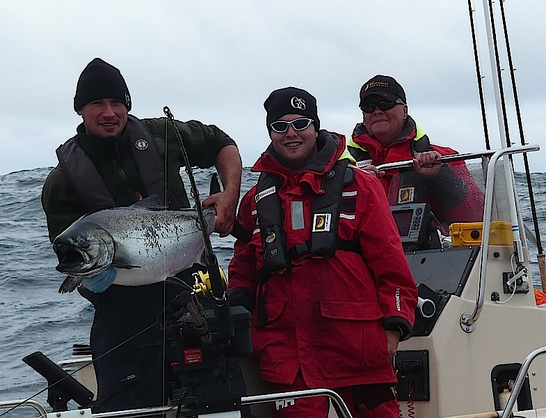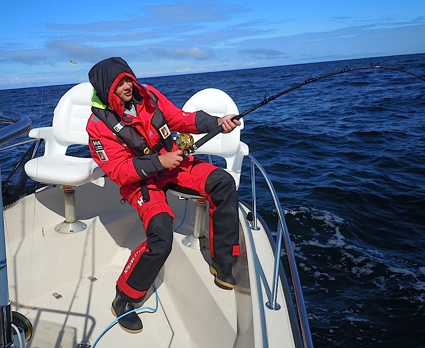 Here's Ty bringing in a big one, he caught & released a 170 lb halibut.