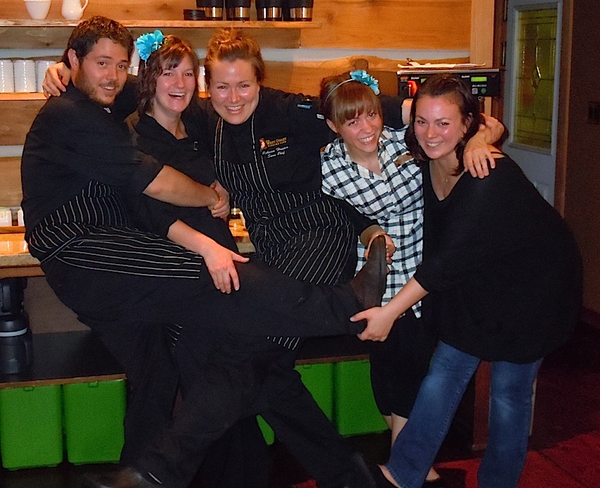 Then of course there's krud. Chef Jordan won the jacket off of two time winner Dan. That's Dan in the backround holding his head in anguish, the guy laughing and pointing is Mark. Looking pretty spiffy Jordan..