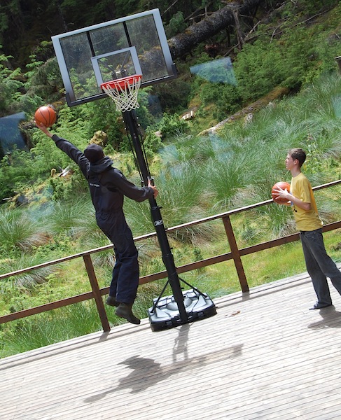 Logan was ten feet tall (actually he almost is)... the first strong shadows on the basketball court in a while...Nile watches singing "I wish I was taller - I wish I was a baller - I wish I had a girl who was cute I would call her"...