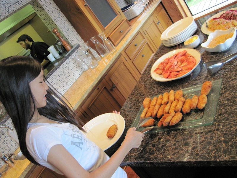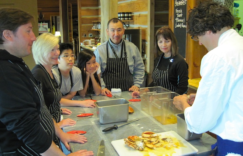 Peter, Judy, Kevin, Sammy, Ken and Dyane get to work extracting the meat from the crabs.