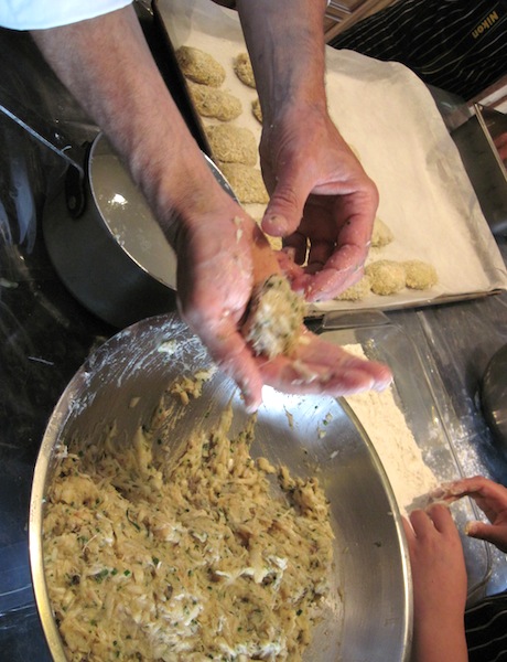 Then mixed with Jamie's herbs and spices they form what will end up being crab cakes...