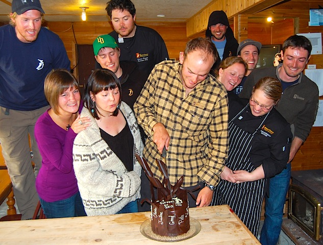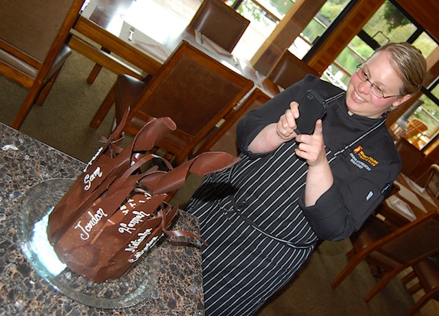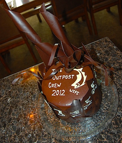 Names of the crew painted in white chocolate...