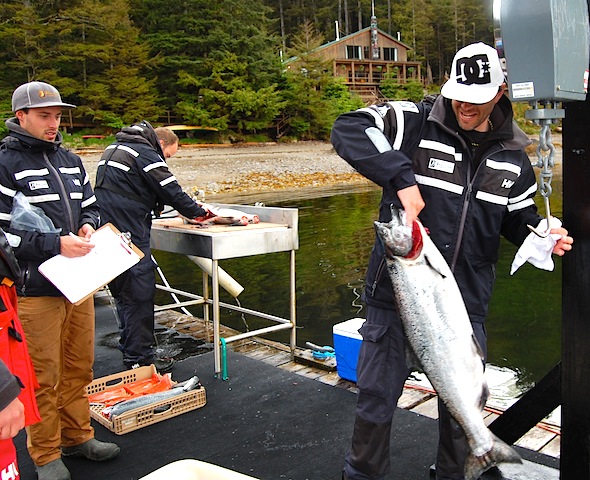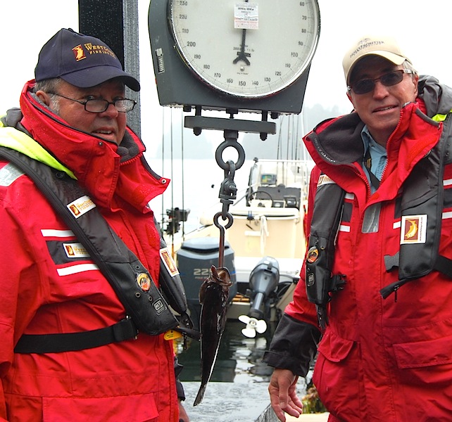 Steve and Dickie were trying to win the wildcard prize of the day for smallest fish on the scale...