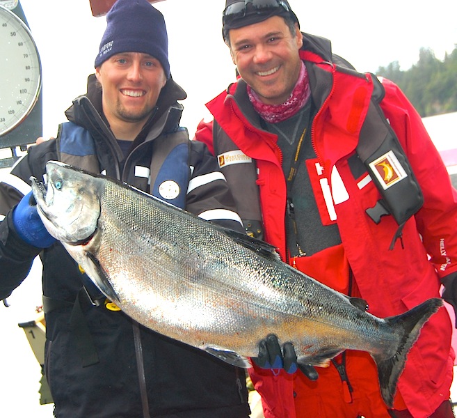 Guide Pete and Bernie pose with a nice 24 pound chinook...