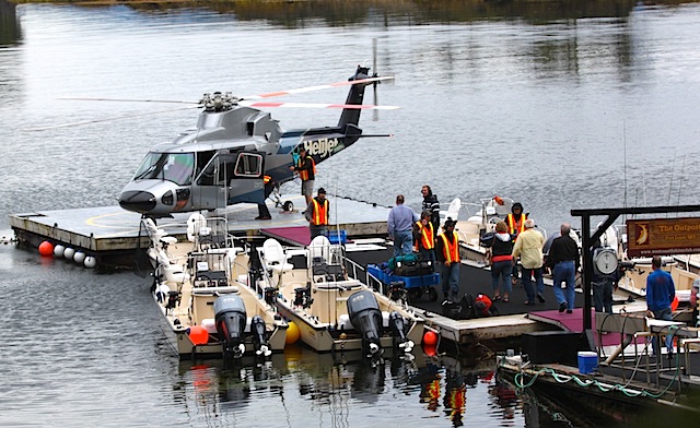 Just as we're getting one group trained up and finely tuned on the water...its also time for them to go. Peter wanders off the helicopter as the guys get it unloaded.