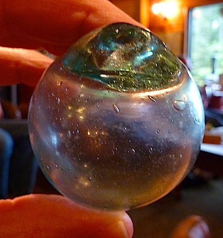 An ancient glass fishing ball from Asia...that drifted to the western shores of Haida Gwaii somewhere over the last century.