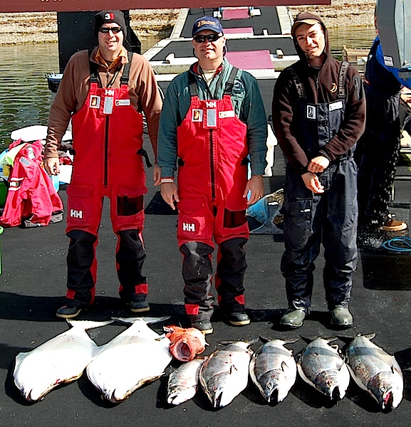 Darin and Dean, fishing with Big Fish Ben, did well yesterday, catching two beautiful halis and some perfect springs to boot. Dean took the lead for this trip with a 33 pounder!! Nice work!!!
