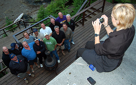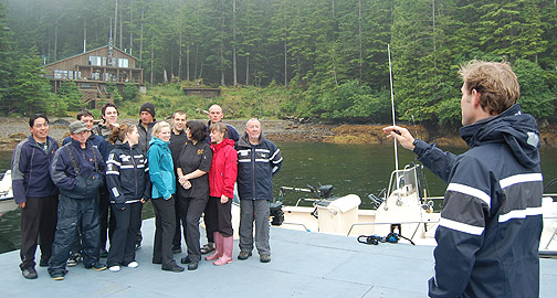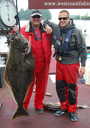 Myles Travis and his group of merry men pose for Linda and a group shot on the deck today. I’ve never seen this group come to attention and behave so quickly. With most guests limited out after a couple of days on the water the fishing targets were the odd Coho and a few remaining halibut. JP and crew marched proudly toward the scale with the Coho they were looking for…