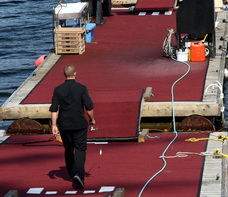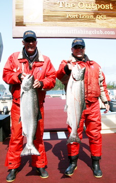 Back on the dock, after the morning session, Jan Gorski shows off a 25 pounder along with Timo Lucas with a 22 pounder: