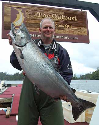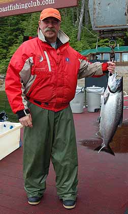 On the dock Brint took an early lead with an excellent strike from midwater to score this 40lb Tyee…