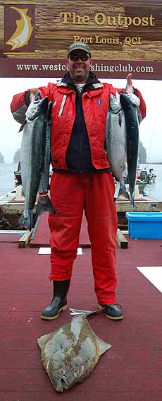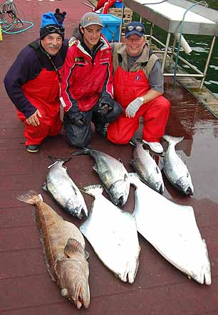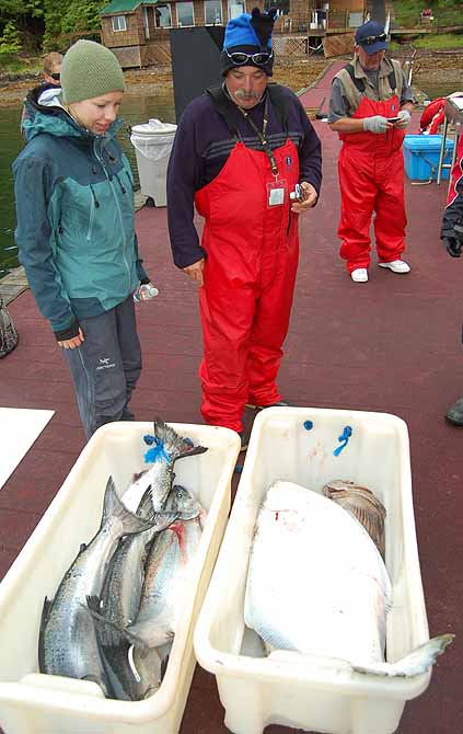 It’s a 33lb Tyee, the first he’s had in a number of years…and a bunch more returned to fight another day. Well done Clay. Son Alan caught and released a monster 115lb hali…