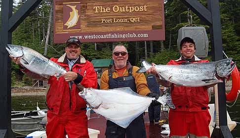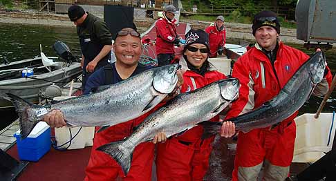 They had a perfect day with a self imposed limit of “everything they wanted” seen here with guide Big Fish Ben. Pierre rolled in with Brian and Nick and assortment of fish. For all you ladies out there Nick not only has caught 3 tyees this trip he’s also got a girlfriend so cry your hearts out…