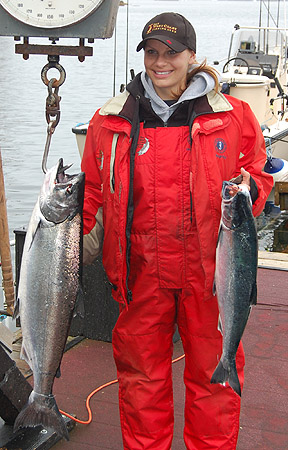 She caught her first Chinook and Coho in the same day, her dad commented that she played them like she’d been fishing for years. Brothers David and Larry also had a fun day on the water and it’s all new for Larry who shows off his first lingcod…