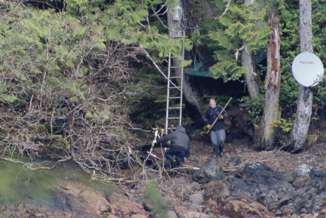 In record time Kingpin had the new rads on the 50kw and the 20kw generators. Mike a hand in trimming some branches down by the dish, that we felt were interfering with our signal.