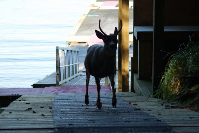 They must have a sixth sense. I quietly opened the patio door from the upper deck of the lodge and slipped out to stand behind one of the posts but the moment I stepped out they took flight.