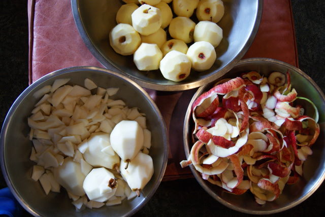 A portion of sliced apples will be vac packed for pies or crisps to be enjoyed in the middle of winter when I know our 'fresh' supplies will be a thing of the past, some will be made into pies to be frozen before baking and a mix of pears and apples will make an interesting apple-pear sauce.