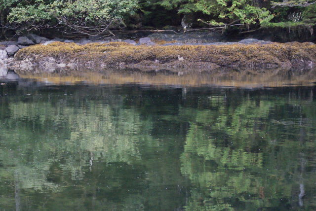 What has surprised me the most about our beach is the amount of stuff or lack of, that washes ashore here. Before our arrival, the first year, I was anticipating unearthing all sorts of floatsom and jetsom that the currents would direct our way but the opposite has been true. Each year I find less and less. Now less garbage is good of course but the variety of shells or shells at all have been dwindling along with interesting bits of wood. I know it's quite early in the season but on this walk I came back empty handed. The motionless bay caught the attention of my lens instead.